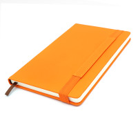 Блокнот формата А5 в твёрдой обложке из искусственной кожи. Материал обложки — термополиуретан, текстура — гладкая. Из особенностей: широкая эластичная застёжка со вставкой из кожзама. На неё можно нанести логотип либо слоган вашей компании.
