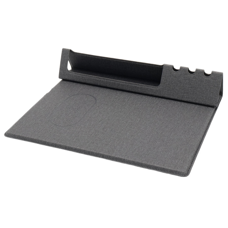 Коврик для мышки с зоной беспроводной зарядки (мощностью 15W) для телефона, дополнительно - складная зона в виде подставки для телефона. Размер коврика составляет 28*22*0, 84см.