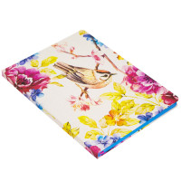 Во время серых скучных дней этот блокнот перенесет ваши мысли в цветущую ароматную весну. Яркие бутоны, цветы, птицы, - невозможно оторвать взгляд от колоритной и в то же время чрезвычайно нежной обложки. Небесно-голубой окрас обреза подчеркивает стилистику. Такую стильную вещь не хочется выпускать из рук. Здесь хочется записать самые сокровенные мысли и мечты.