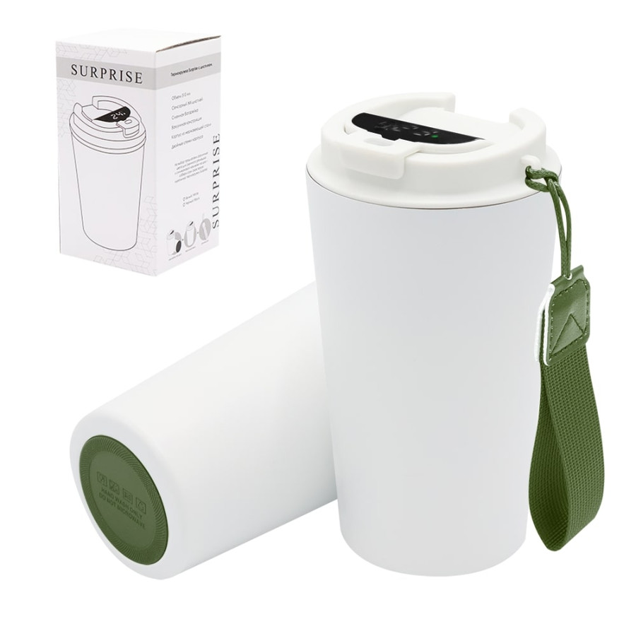 Термокружка Surprise To Go с индикатором, белая/хаки