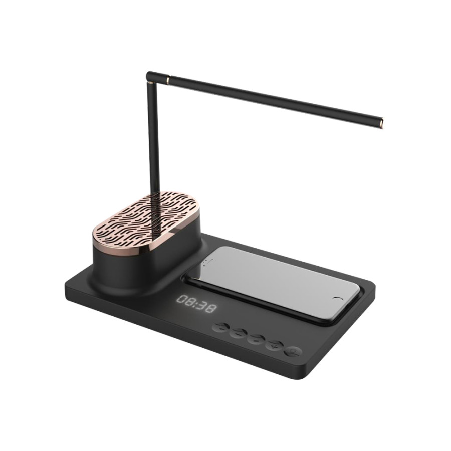 Интерьерная лампа c колонкой, беспроводной зарядкой и дисплеем Volando