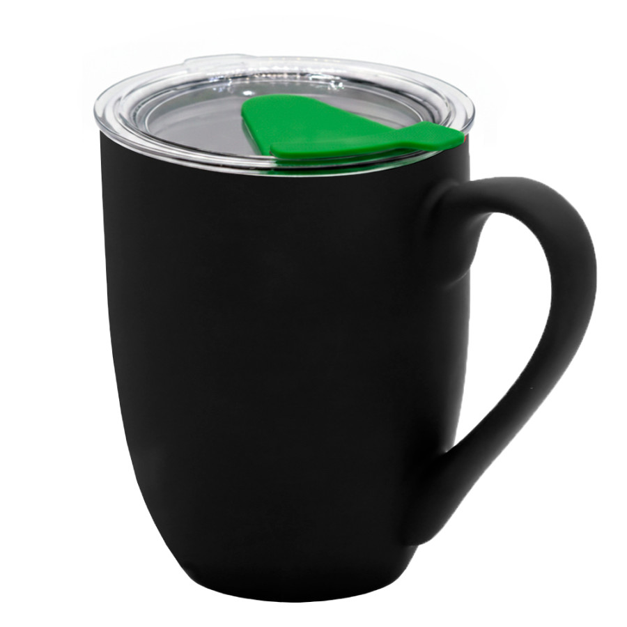 Кружка с крышкой Velvet Duo, софт-тач, чёрная/зелёная