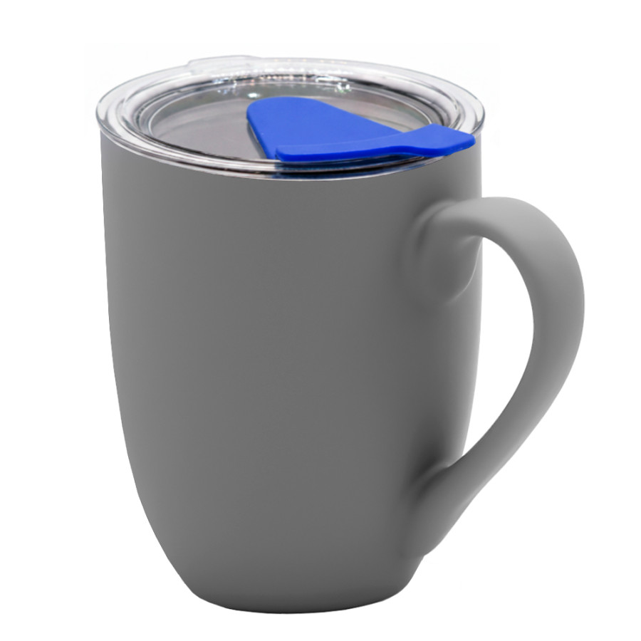 Кружка с крышкой Velvet Duo, софт-тач, тёмно-серая/синяя