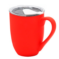 Кружка с крышкой Velvet Duo, софт-тач, красная/белая