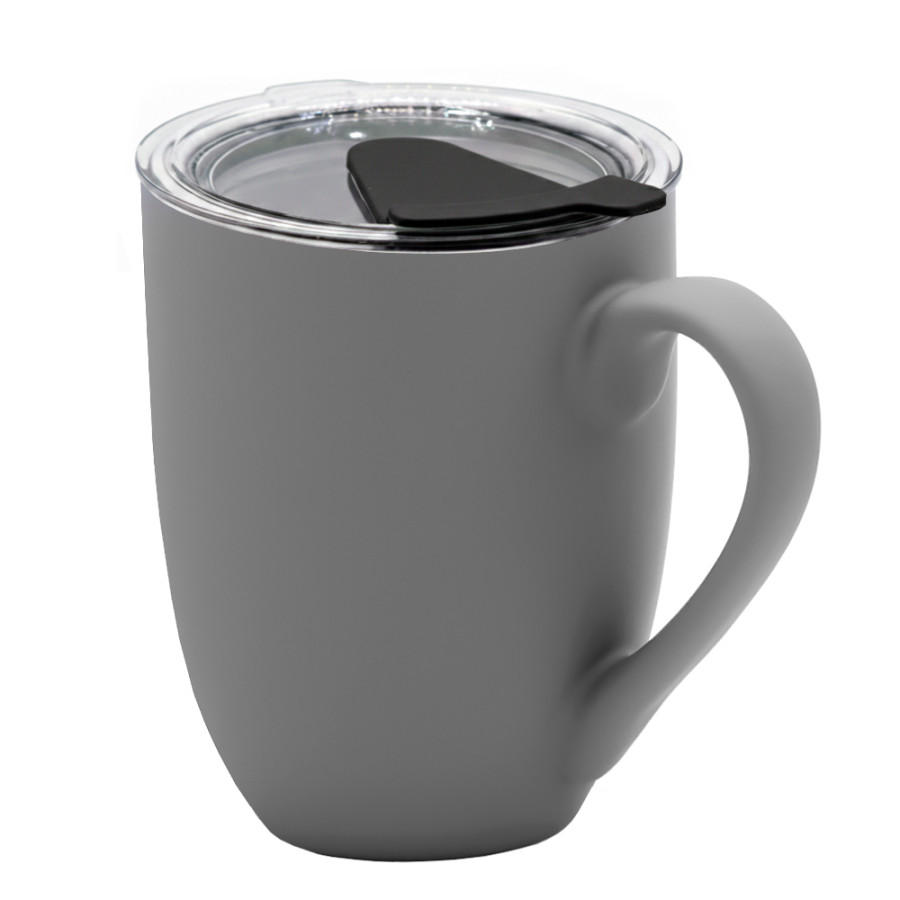 Кружка с крышкой Velvet Duo, софт-тач, тёмно-серая/чёрная