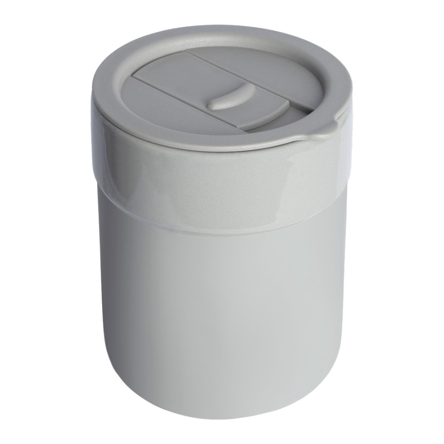 Цвет кружки, крышки, силиконовой манжеты - серый, максильно приближен к Pantone 422 С.