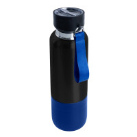 Термос Hike c ланьярдом и манжетой, чёрный-синий