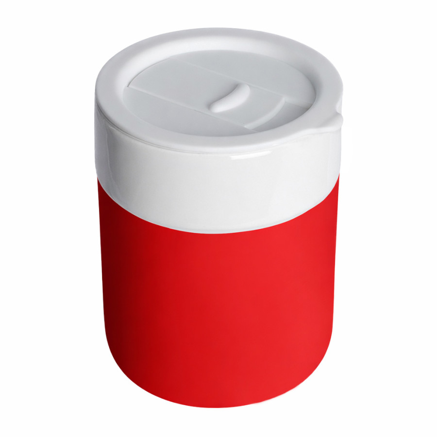 Кружка кермическая Silvia с силиконовой манжетой, белая-красная