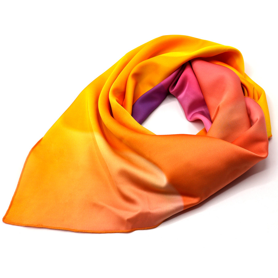 Платок односторонний Вист Полноцветная печать по всей поверхности от шва до шва с одной стороны. Возможны любые оттенки по CMYK: логотипы, надписи и разнообразные принты. Прохождение красок на изнаночную сторону зависит от плотности и структуры материала (яркость от 30 до 80%). Края обработаны микрооверлоком (закруткой), ширина шва 2-3мм. Размер: 80*80 см. Материал на выбор: Шифон Стандарт 70гр. Шифон Шарм 55гр. Шелк Армани 85гр.