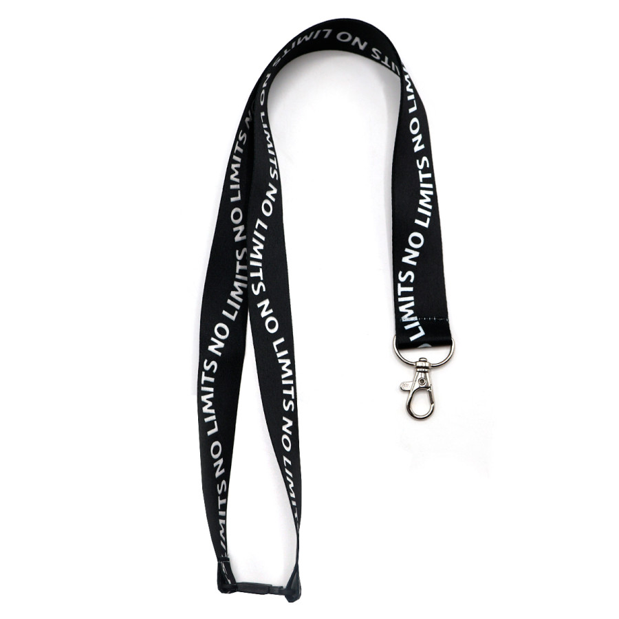 Шнурок (лента) для бейджа с одним металлическим карабином и пластиковым замком безопасного разрыва.
