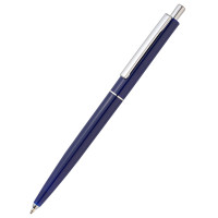 Качественная пластиковая ручка, синие чернила, хромированные элементы. Толщина пишущего узла 1 мм, длина письма рассчитана на 700 м.