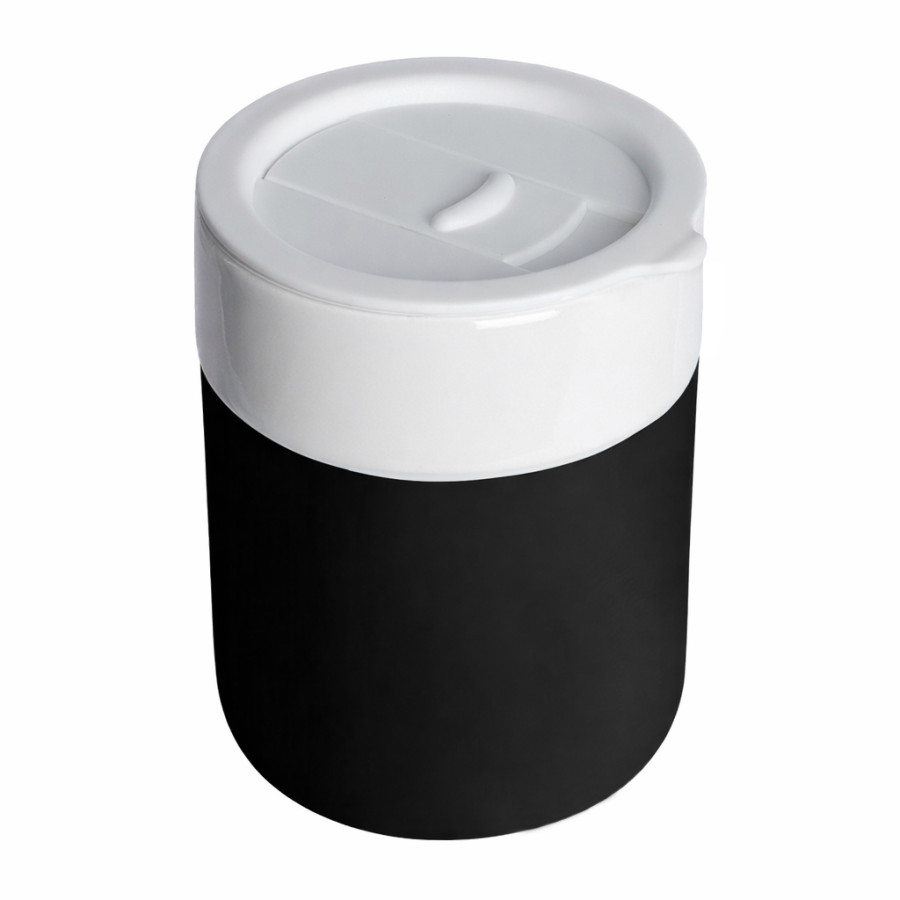 Кружка кермическая Silvia с силиконовой манжетой, белая-чёрная