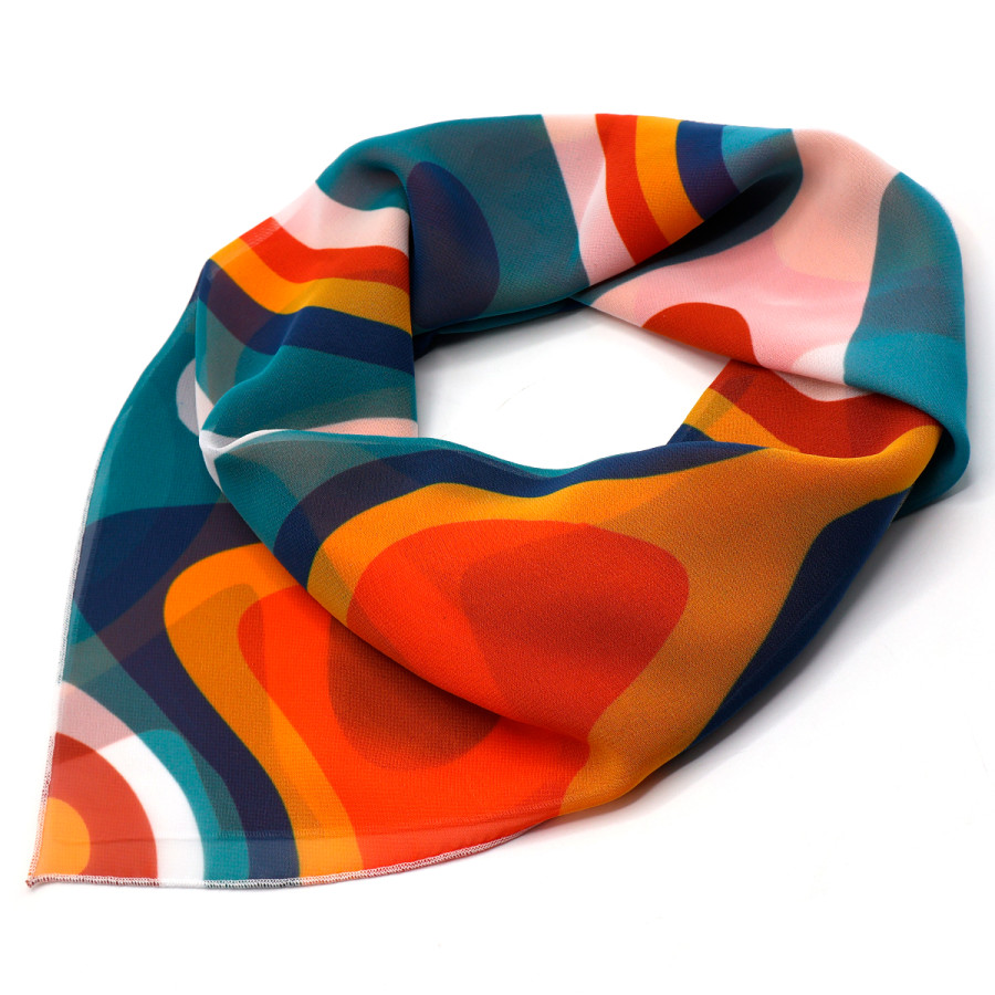 Платок односторонний Вист Полноцветная печать по всей поверхности от шва до шва с одной стороны. Возможны любые оттенки по CMYK: логотипы, надписи и разнообразные принты. Прохождение красок на изнаночную сторону зависит от плотности и структуры материала (яркость от 30 до 80%). Края обработаны микрооверлоком (закруткой), ширина шва 2-3мм. Размер: 70*70 см. Материал на выбор: Шифон Стандарт 70гр. Шифон Шарм 55гр. Шелк Армани 85гр.