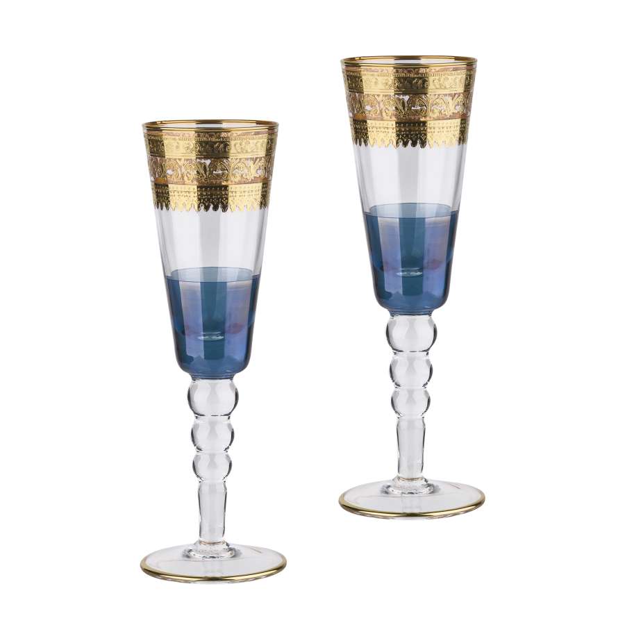 Набор для шампанского, 2 фужера, цвет синий с золотом