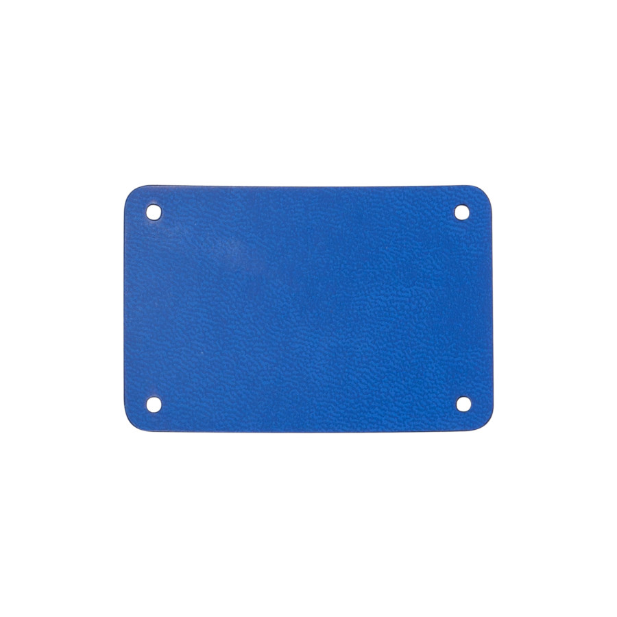 Шильд 4 х 6 см для кастомизации пледов и других изделий. Матовый материал с гладной фактурой и однородным цветом, подходит для тиснения и гравировки (CO). Установка производится на металлические хольнитены (заклепки) по углам.