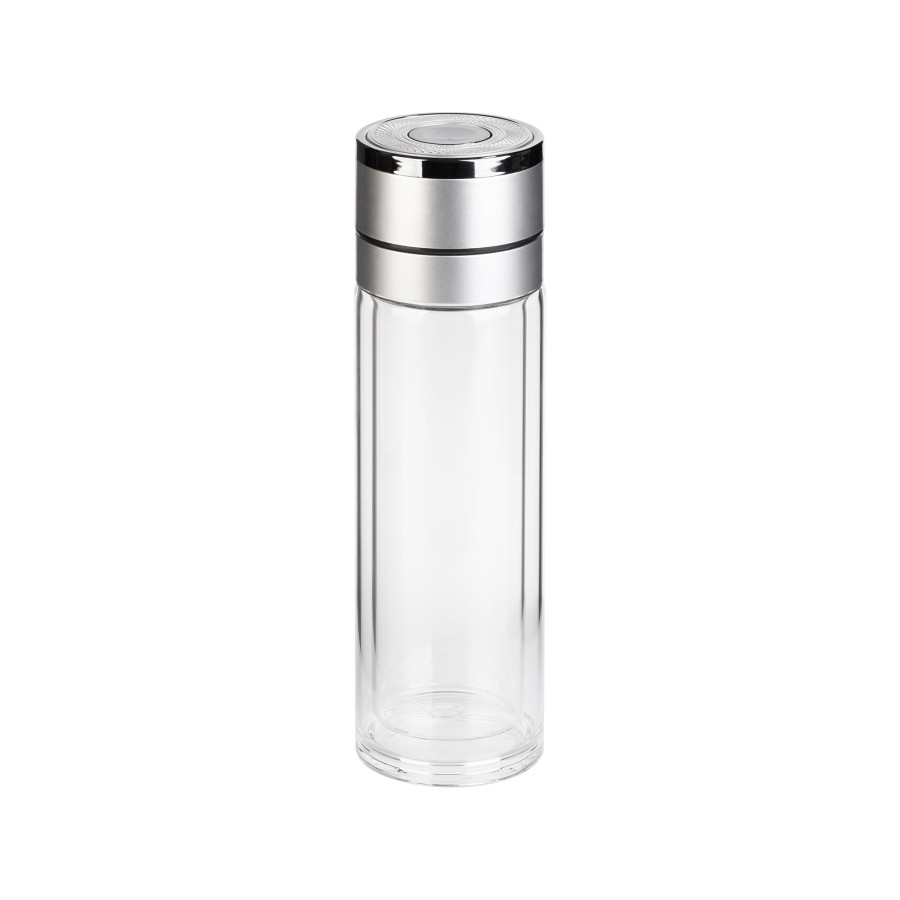 Заварочный термос "Press" 400 мл с удобной крышкой, которая открывается нажатием кнопки, для закрытия достаточно слегка надавить на нее до щелчка. Сито из 304 стали для фильтрации содержимого. Двустенная колба из боросиликатного стекла идеально подходит для горячих напитков, внешняя стенка не нагревается, комфортно держать в руках. Стекло не имеет посторонних запахов, напитки сохраняют вкус.