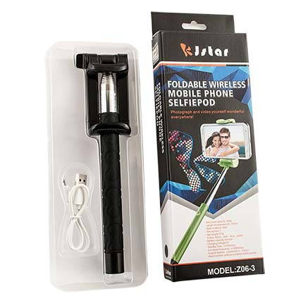 Монопод для селфи Kjstar Z06-3 складной со встроенной кнопкой Bluetooth (беспроводной), цвет черный