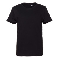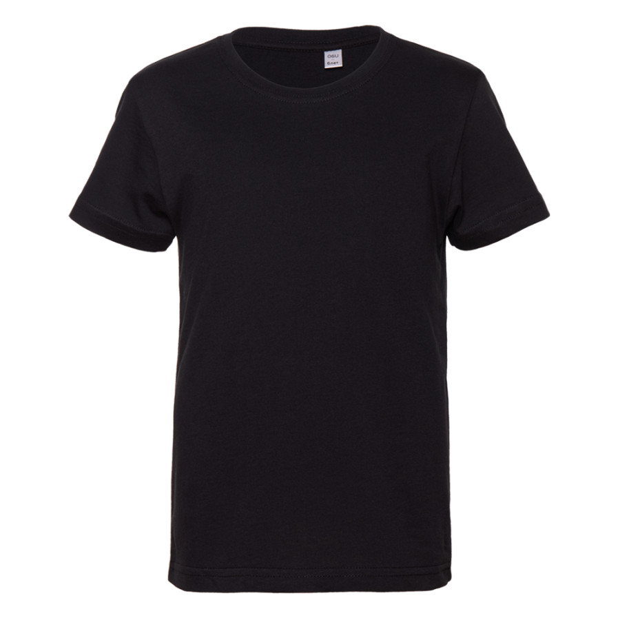 Детская футболка свободного силуэта с округлым воротом и втачным рукавом. Плечевые швы и шов горловины спинки усилены настрочной бейкой из основного полотна.