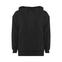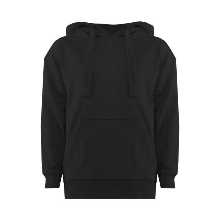 Модель прямого силуэта с капюшоном комфортной глубины, спущенной линией плеча и накладным карманом-кенгуру. Капюшон регулируется плоским шнуром, горловина спинки усилена киперной лентой. Манжет и низ изделия выполнены широкой эластичной резинкой в тон основному цвету.