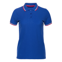 Женская модель приталенного кроя с отложным воротником, втачным рукавом и застежкой на пуговицы. Воротник и манжет оформлены тесьмой в цвете «триколор».