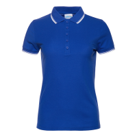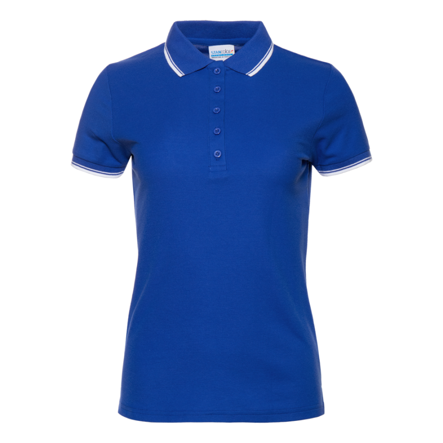 Женское поло приталенного силуэта с отложным воротником, втачным коротким рукавом и застежкой на пуговицы. Воротник и манжет выполнены контрастной резинкой.