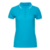 Женское поло приталенного силуэта с отложным воротником, втачным коротким рукавом и застежкой на пуговицы. Воротник и манжет выполнены контрастной резинкой.