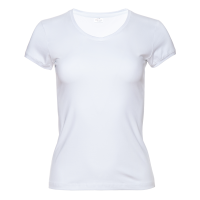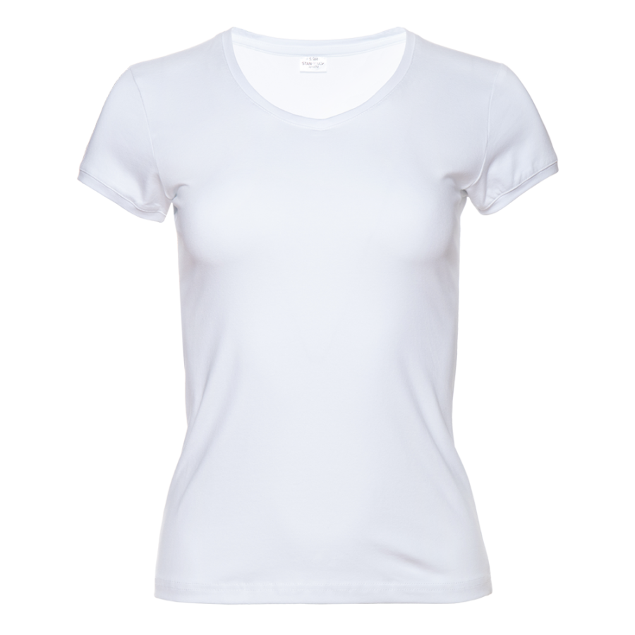 Женская футболка облегающего силуэта с V-образным воротом и втачным рукавом с плотным трикотажным манжетом.
