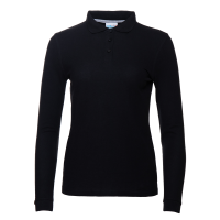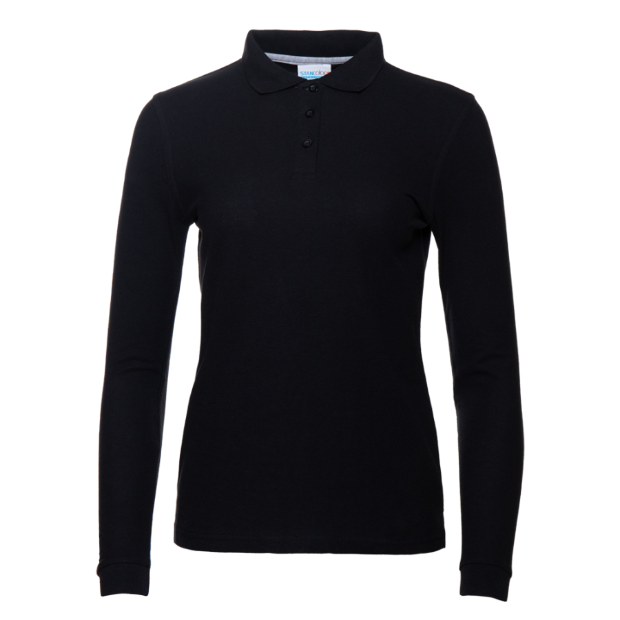 Женская рубашка поло приталенного силуэта с отложным воротником, длинным рукавом и застежкой на пуговицы.