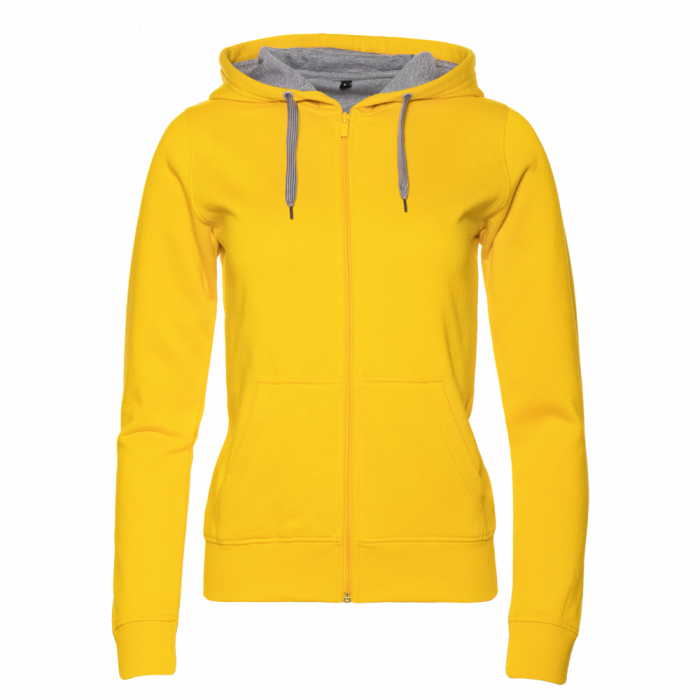 Женская толстовка приталенного кроя с капюшоном комфортной глубины, втачным рукавом, накладным карманом и застежкой на молнию в тон основному цвету. Для дополнительной защиты от холода ворот, манжет и низ изделия оформлены эластичной бейкой.