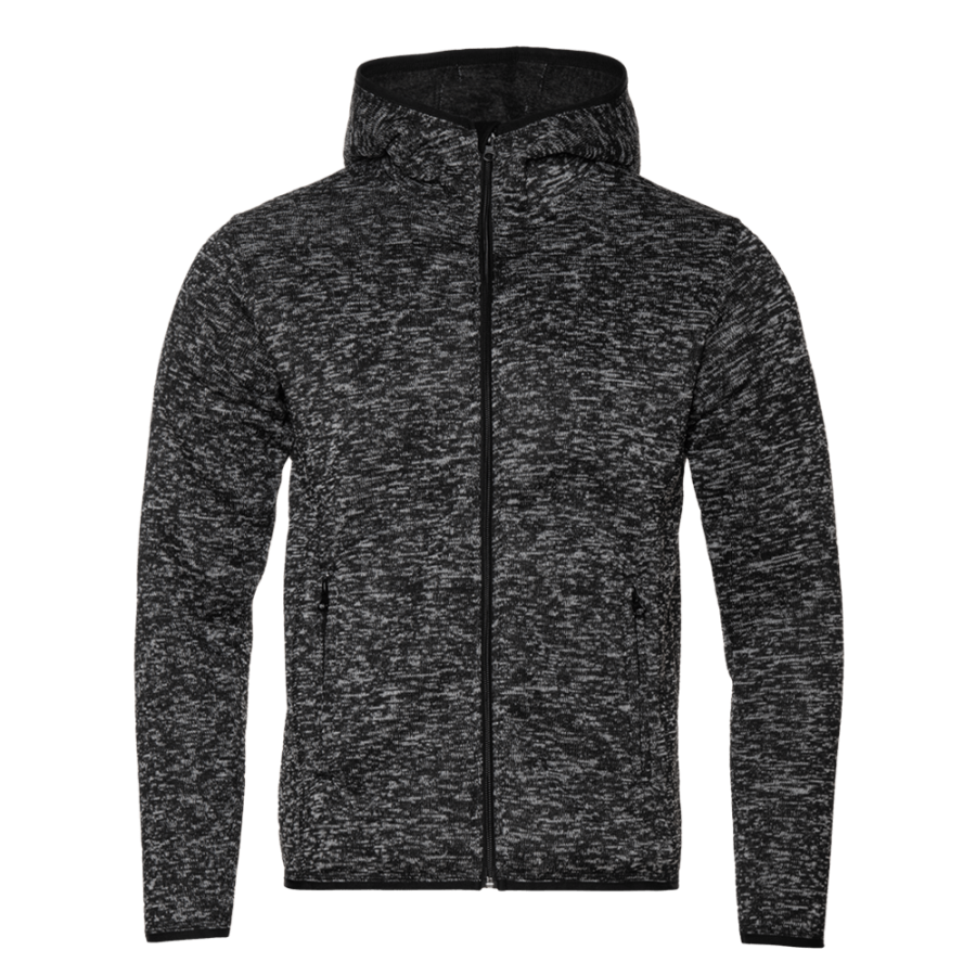 Утеплённая толстовка выполнена из вязаного флиса в цвете меланж. Невесомый материал обладает высокой степенью воздухопроницаемости и гигроскопичности, не требует особого ухода.