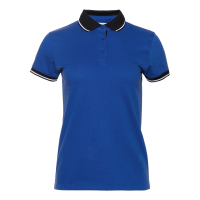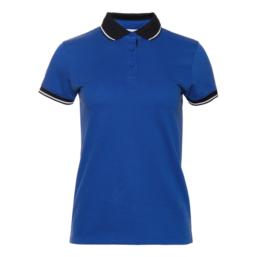 Женская рубашка поло приталенного силуэта с контрастным отложным воротником и манжетом, втачным коротким рукавом и застежку на пуговицы. Асимметричный крой гарантирует свободу движения и защиту спины от продувания ветром.