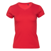 Женская футболка облегающего силуэта с V-образным воротом и втачным рукавом с плотным трикотажным манжетом.