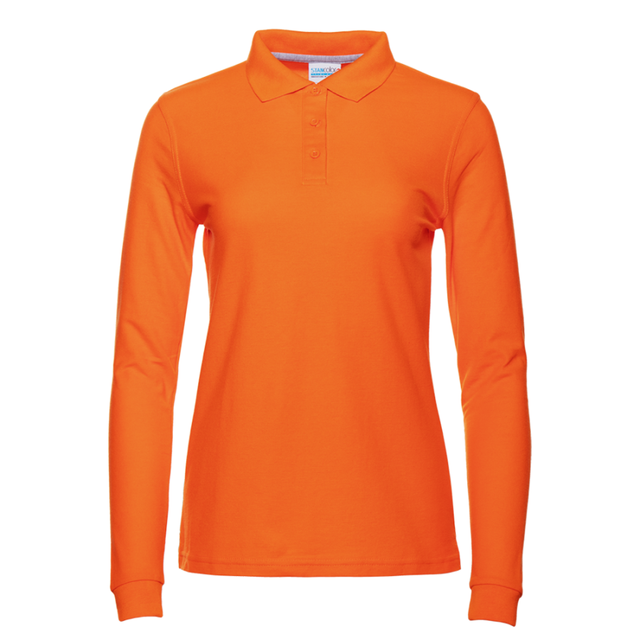 Женская рубашка поло приталенного силуэта с отложным воротником, длинным рукавом и застежкой на пуговицы.