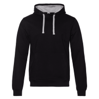 Толстовка прямого силуэта с капюшоном, втачным рукавом и карманом-кенгуру. Капюшон дополнен шнурком для регулирования прилегания, манжет и низ изделия оформлены широкой эластичной резинкой. Возможно два варианта исполнения: контрастные шнурок и бейка/шнурок и бейка в цвет толстовки.