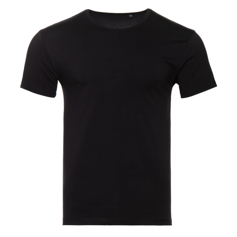 Мужская футболка облегающего силуэта с округлым вырезом и втачным рукавом.