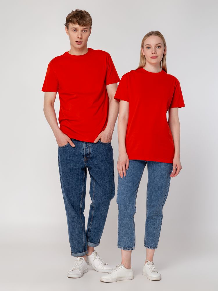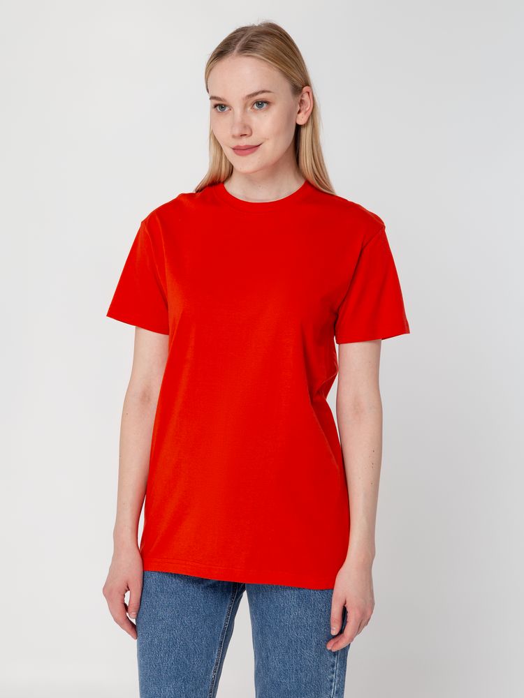 Базовая футболка унисекс прямого силуэта без боковых швов (размеры XS–4XL) или с боковыми швами (размеры 5XL–6XL).