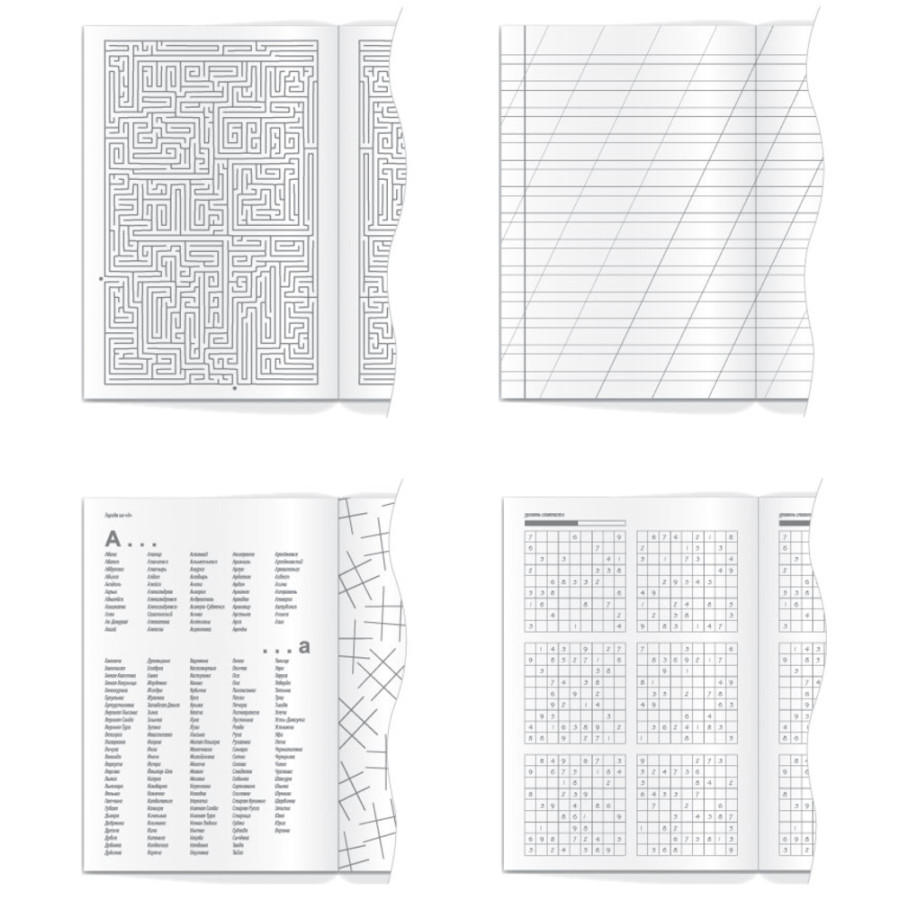Суровая обложка в стиле industrial скрывает страницы весьма нестандартного блокнота-ежедневника. Внутри — страницы, разлинованные всеми возможными способами; чистые листы и классический набор «бумажных» игр: от морского боя до судоку, а также «листы гнева».