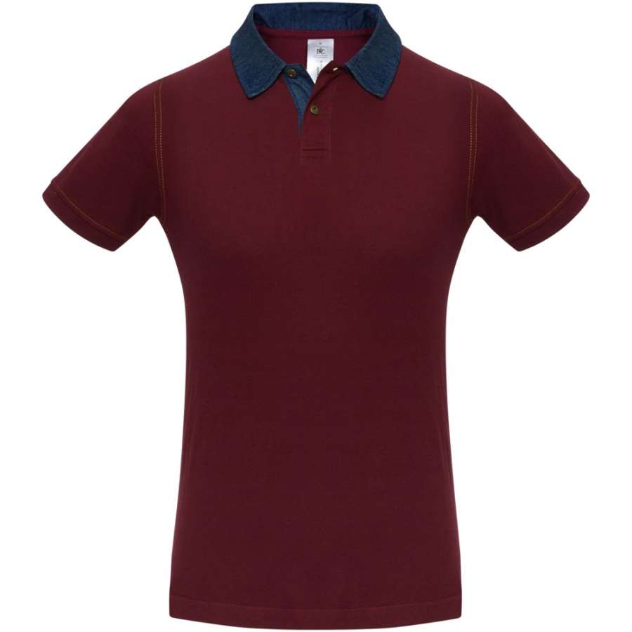 Рубашка поло с джинсовым воротником и контрастной отстрочкой.