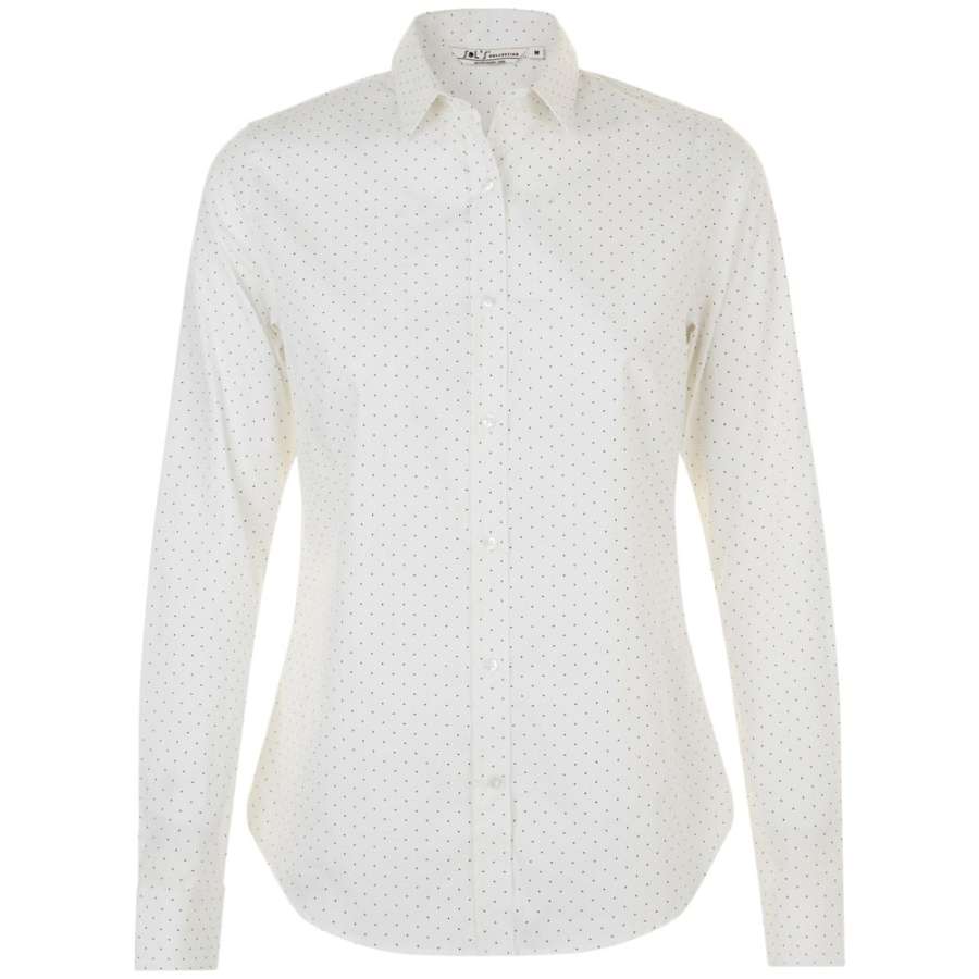 Модная рубашка с печатным рисунком в горошек, которая прекрасно впишется в современный корпоративный стиль. Приталенная модель с нагрудными вытачками, маленьким классическим воротничком, планкой с 7 пуговицами тон в тон и манжетами на 1 пуговице с разрезом «капуцин».