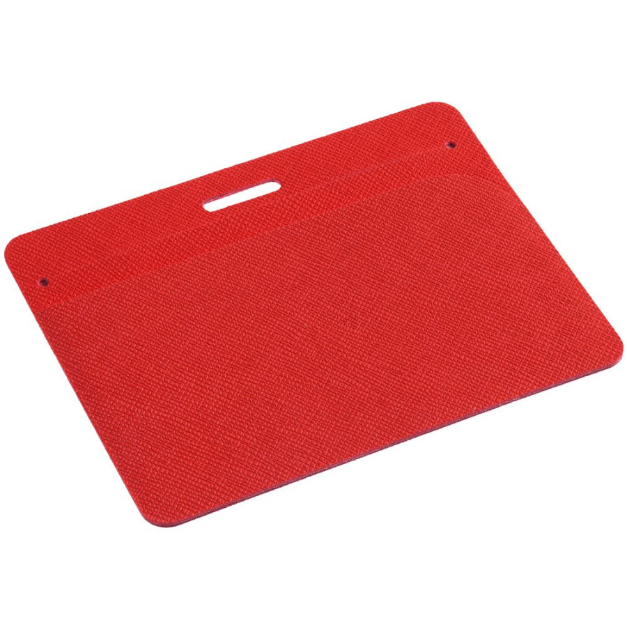 Чехол для карточки с пластиковым окошком из искусственного материала, имитирующего сафьяновую кожу.