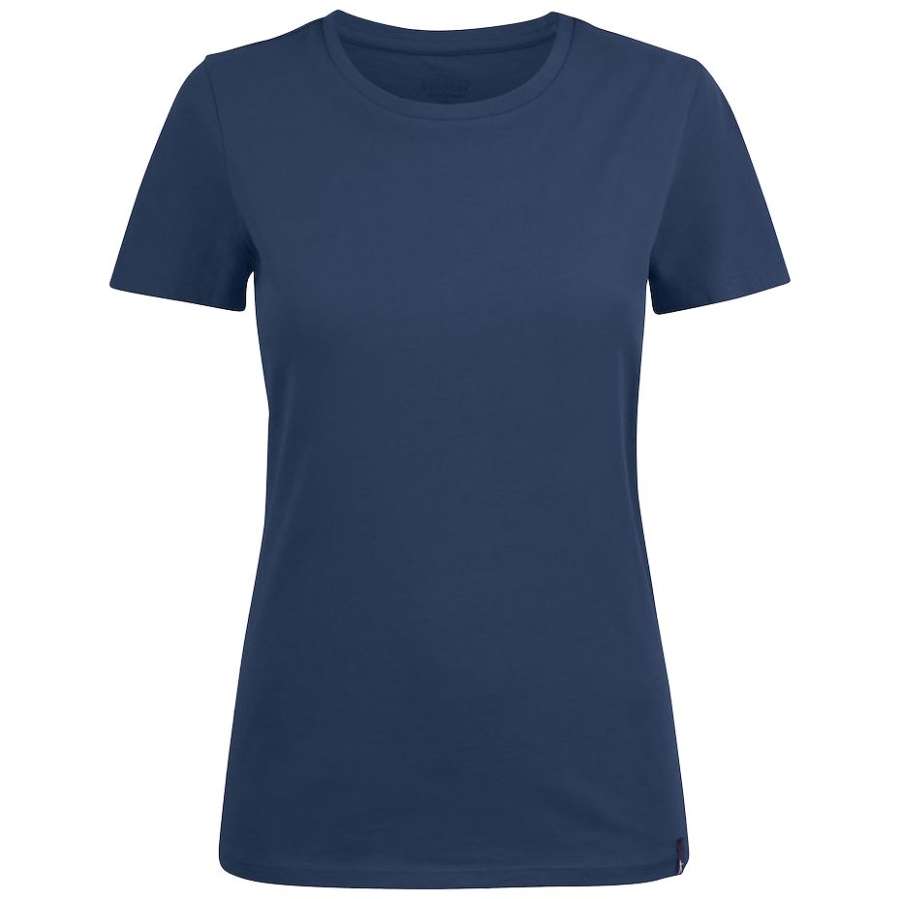 Женская футболка с круглым вырезом. Двухслойная резинка предохраняет воротник от деформации после стирки.