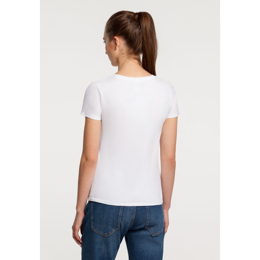 Кроеная футболка приталенного силуэта с круглым вырезом.