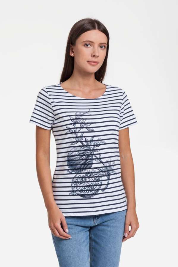 Кроеная женская футболка с короткими рукавами.
