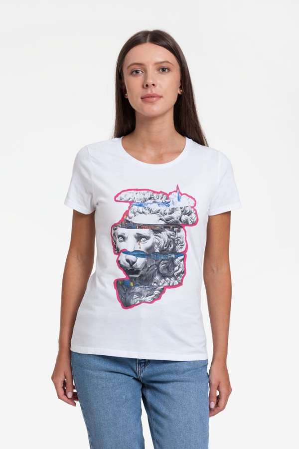 «Смотри вглубь», ведь все вокруг удивительно многомерно. Кроеная футболка приталенного силуэта с круглым воротом.