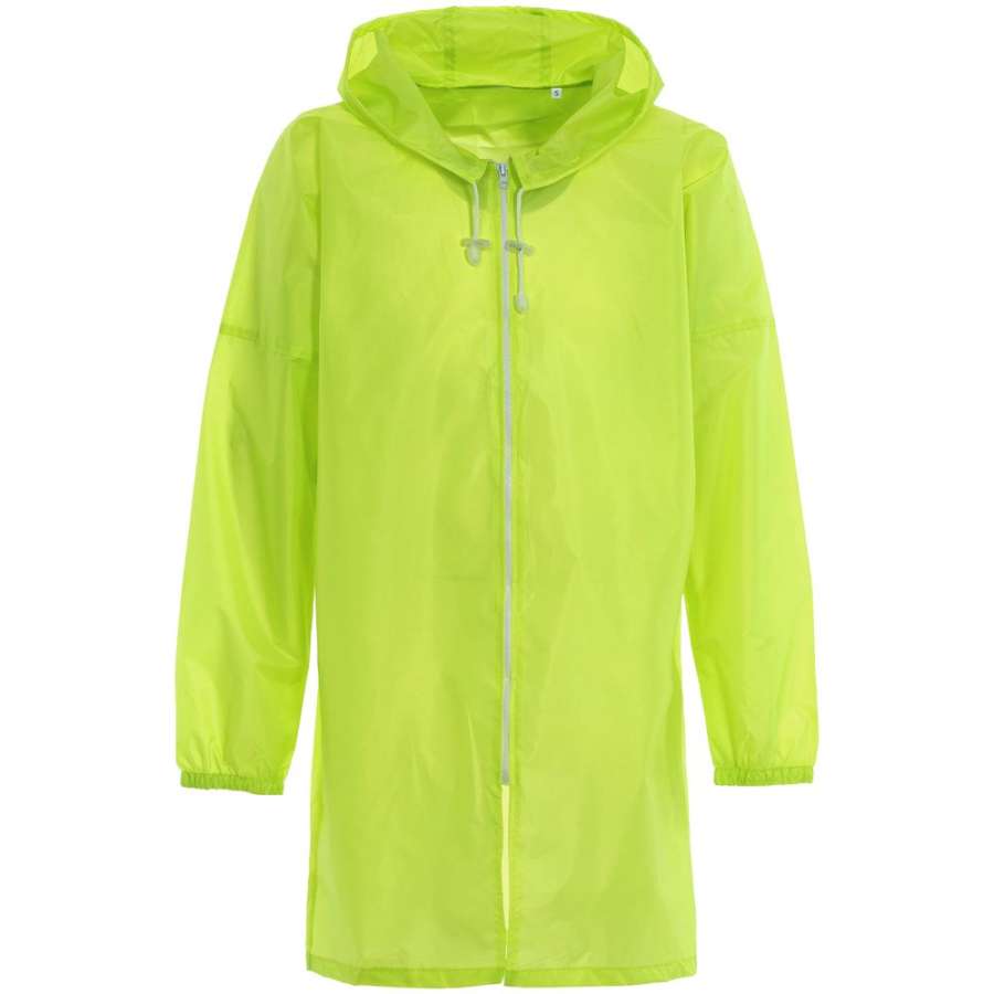 Плащ-дождевик из ткани таффета на молнии с капюшоном. Складывается в мешочек — удобно брать с собой.