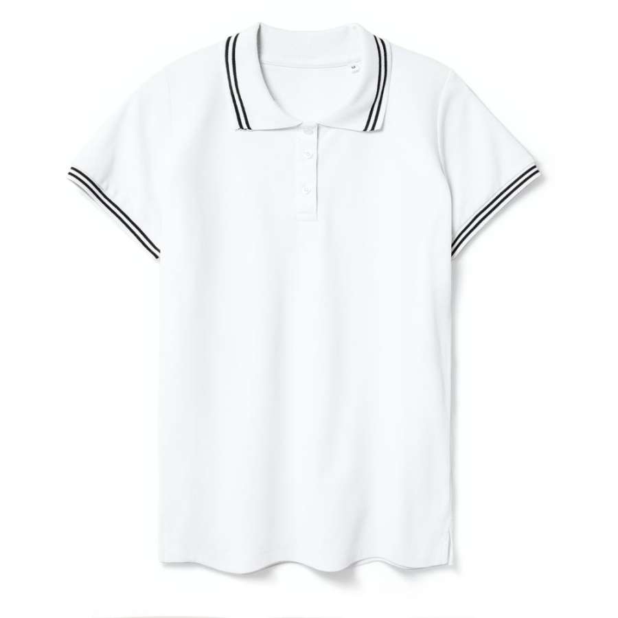 Женская рубашка поло приталенного силуэта с контрастными деталями.