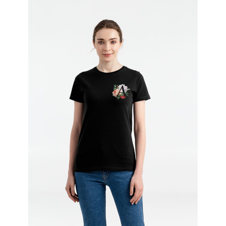 Футболка женская «Цветочная азбука: А», черная