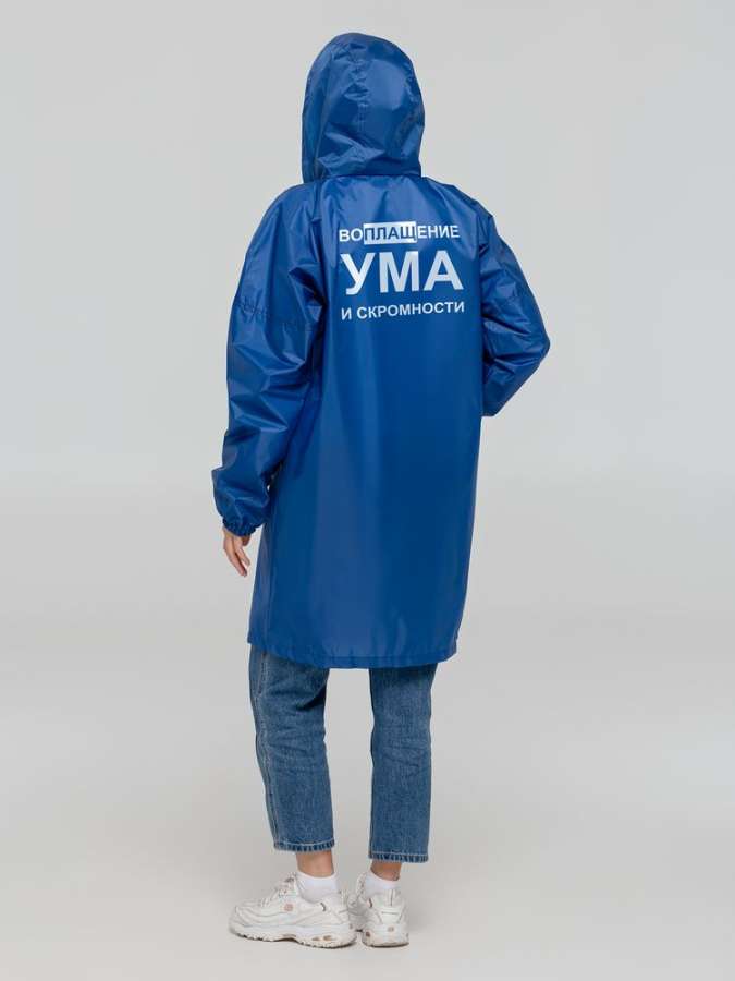 Серия дождевиков с принтом «Воплащение» для тех, кто и в дождливую погоду готов преображаться и шутить. Ум и скромность, красота, а может быть порок? «Воплащение ума» — плащ гениальных людей, осознающих свое превосходство, но принимающих похвалу с присущей им скромностью. Плащ-дождевик из ткани таффета на молнии с капюшоном. Складывается в мешочек — удобно брать с собой.