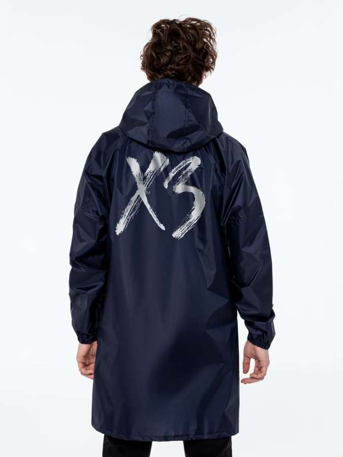 Плащ-дождевик из ткани таффета на молнии с капюшоном. Складывается в мешочек — удобно брать с собой.