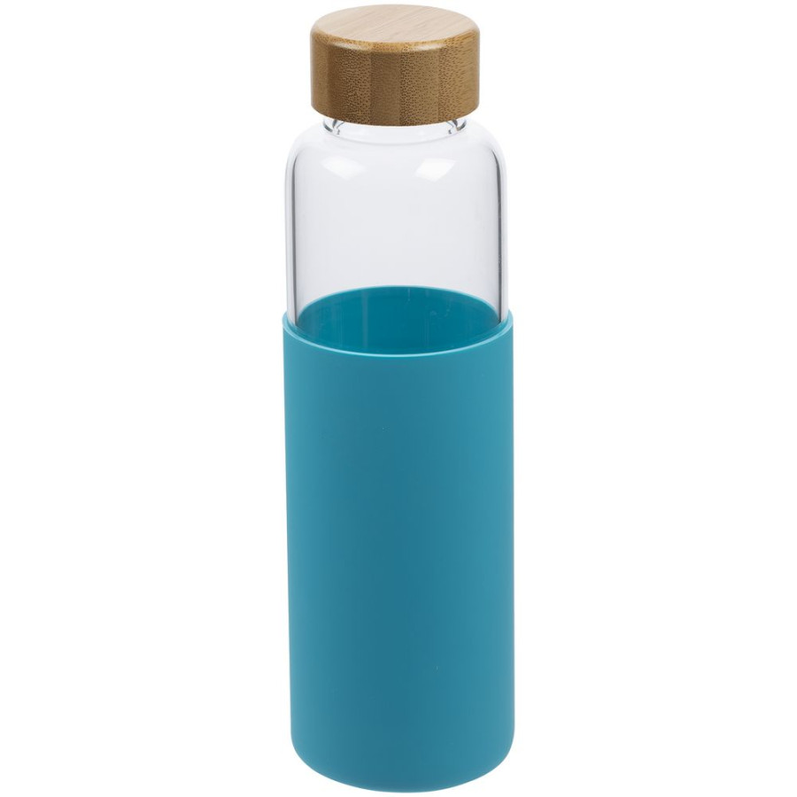 Бутылка со стеклянной колбой и крышкой из бамбука — изящное решение для тех, кто предпочитает природные материалы. Яркий силиконовый чехол защищает колбу от повреждений.
